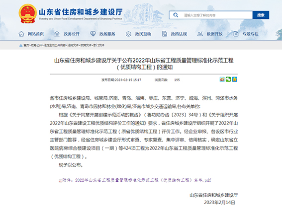 近日,山東省住房和城鄉(xiāng)建設(shè)廳公布2022年山東省工程質(zhì)量管理標(biāo)準(zhǔn)化示范工程(優(yōu)質(zhì)結(jié)構(gòu)工程)獲獎名單,天華實業(yè)集團所承攬的廣饒魯商城市廣場1#樓及地下車庫項目榜上有名,榮獲2022年度山東省工程質(zhì)量管理標(biāo)準(zhǔn)化示范工程(優(yōu)質(zhì)結(jié)構(gòu)工程)。這是天華實業(yè)集團踐行“創(chuàng)造城市美好生活”的企業(yè)使命,致力打造精品工程的又一成果。