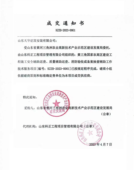 近日,天華實業(yè)集團榮任山東省黃河三角洲農業(yè)高新技術產業(yè)示范區(qū)建設發(fā)展局技術服務供應商,負責黃三角國家農高區(qū)建設工程施工安全輔助巡查、質量輔助巡查、消防驗收或備案抽查輔助工作技術服務項目。