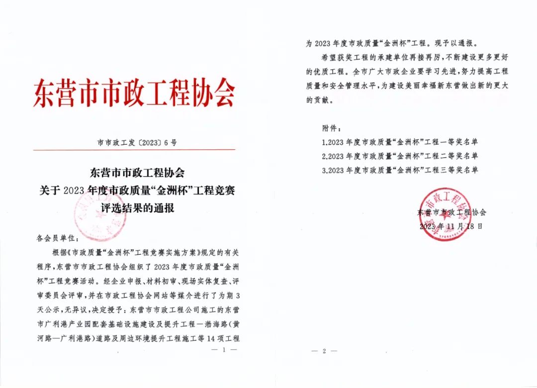 東營市建筑和裝飾裝修質(zhì)量“金洲杯”獎每年評選一次,是我市建設(shè)行業(yè)工程質(zhì)量的最高榮譽獎,對提高區(qū)域工程施工管理和質(zhì)量管理水平起到了積極促進(jìn)作用。