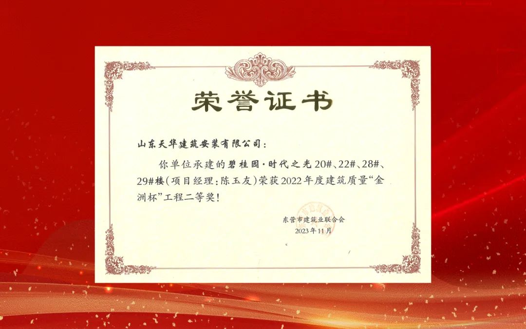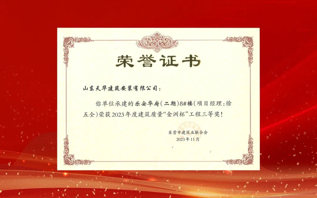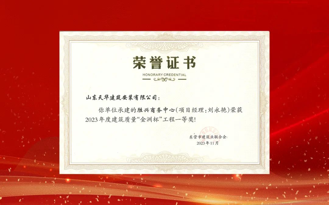 近日,東營市建筑業(yè)聯(lián)合會公布了《關(guān)于2023年度建筑和裝飾裝修質(zhì)量“金洲杯”工程競賽評選結(jié)果的通報》,天華實業(yè)集團(tuán)承建的“勝興商務(wù)中心”等5個項目獲此殊榮。這是天華實業(yè)集團(tuán)始終堅持品牌戰(zhàn)略,高度重視技術(shù)創(chuàng)新和質(zhì)量管理,自覺弘揚工匠精神,在施工全過程精益求精、高標(biāo)準(zhǔn)嚴(yán)要求取得的成果。