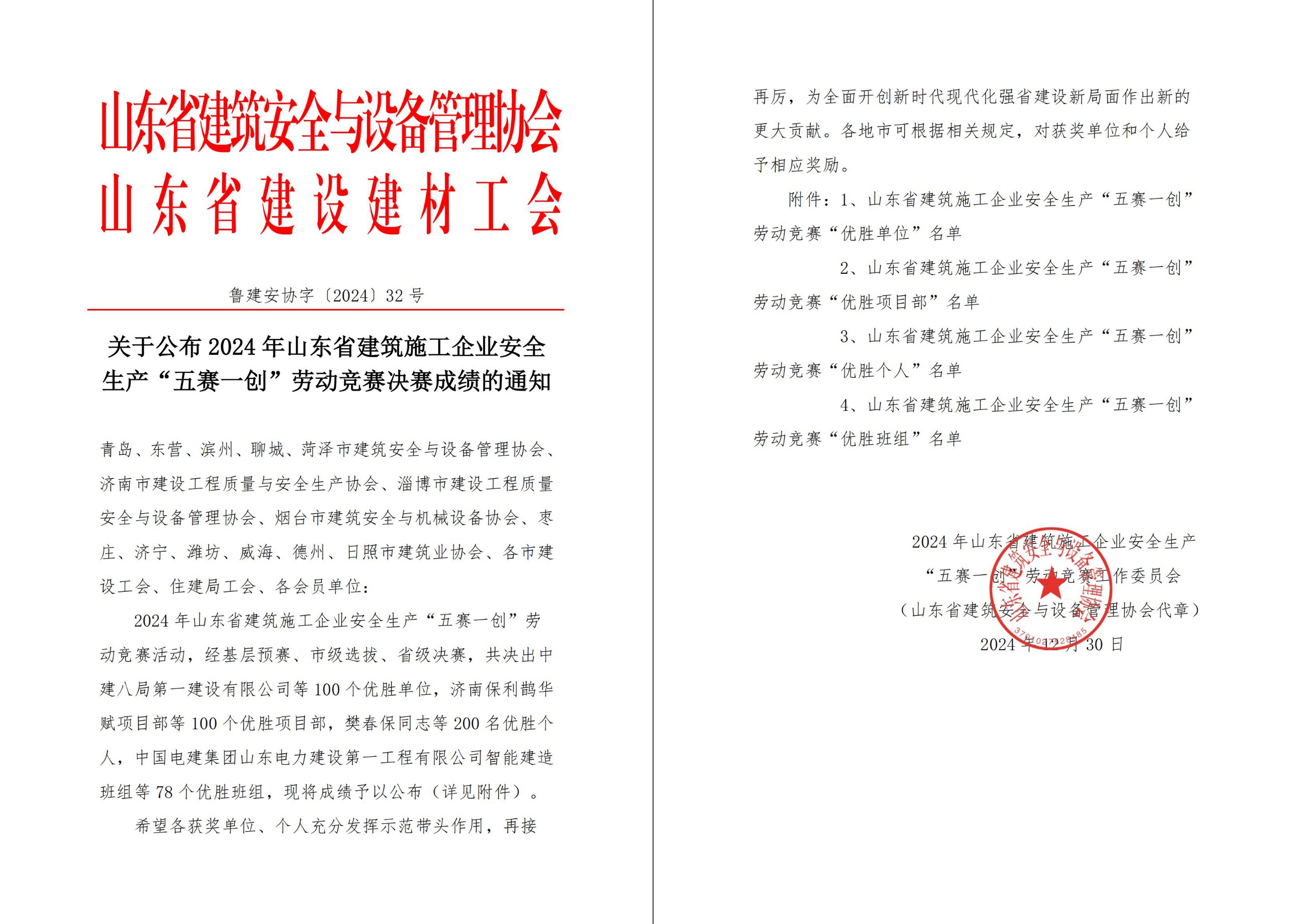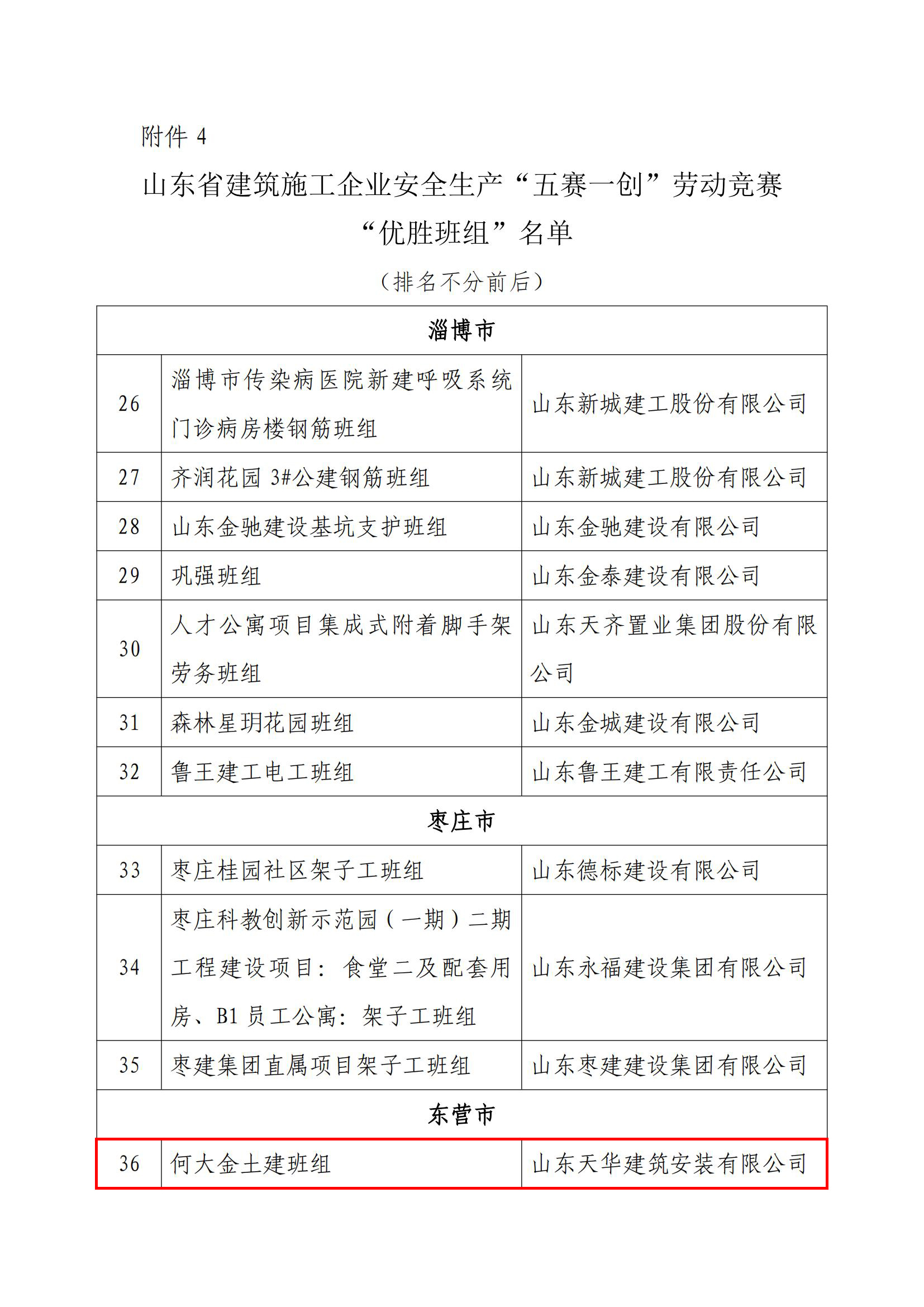 何大金土建班組榮獲“山東省建筑施工企業(yè)安全生產(chǎn)‘五賽一創(chuàng)’勞動競賽‘優(yōu)勝班組’”稱號。