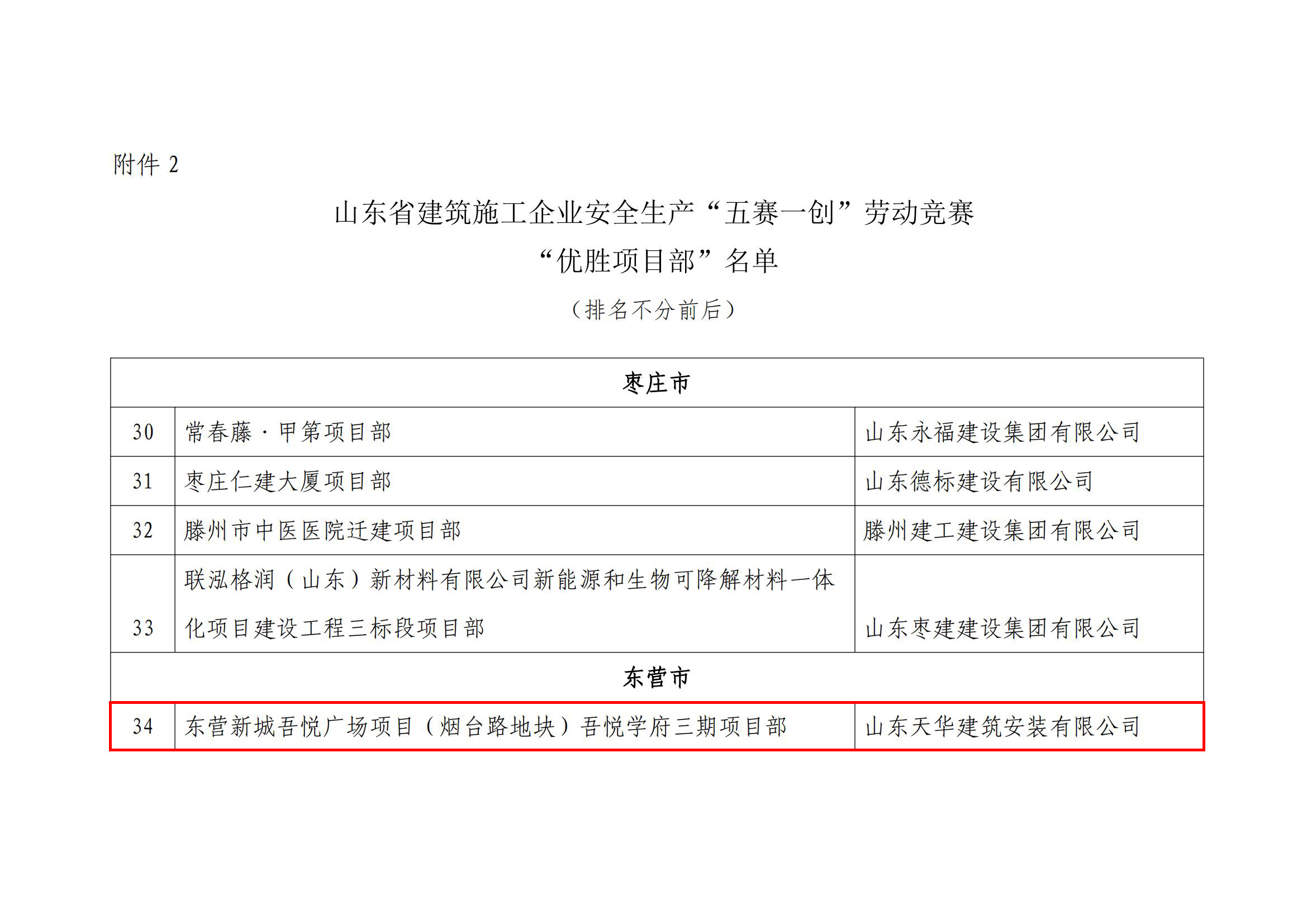 東營新城吾悅學(xué)府項目部榮獲“山東省建筑施工企業(yè)安全生產(chǎn)‘五賽一創(chuàng)’勞動競賽‘優(yōu)勝項目部’”稱號。