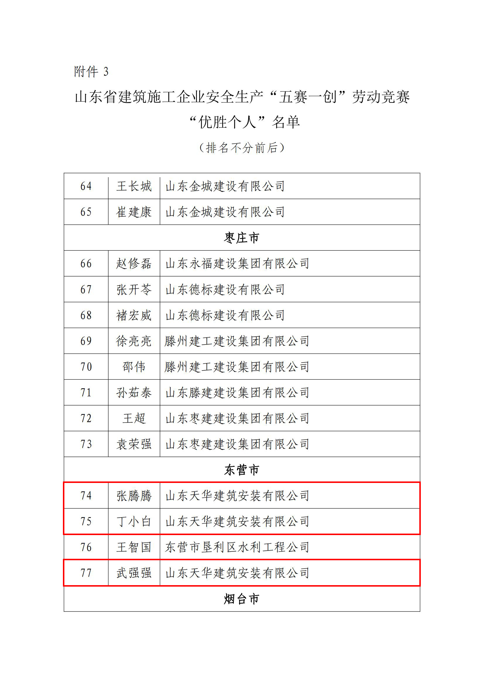 張騰騰、丁小白、武強強榮獲“山東省建筑施工企業(yè)安全生產(chǎn)‘五賽一創(chuàng)’勞動競賽‘優(yōu)勝個人’”稱號。